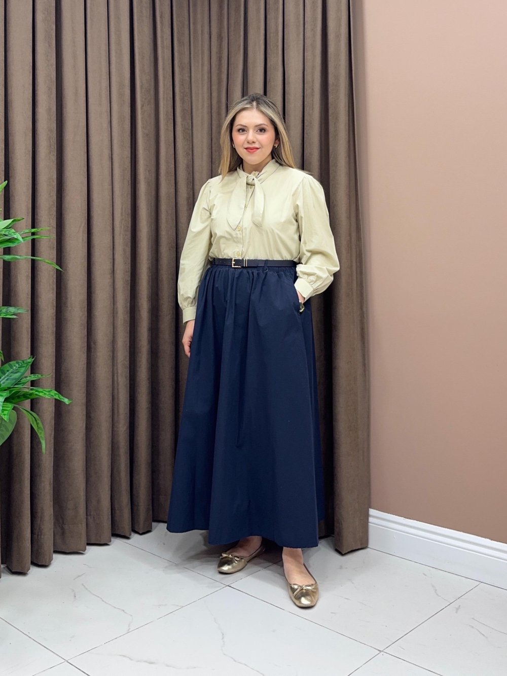 Kemer hediyelidir. Etek beli lastiklidir. Rahat kalıptır