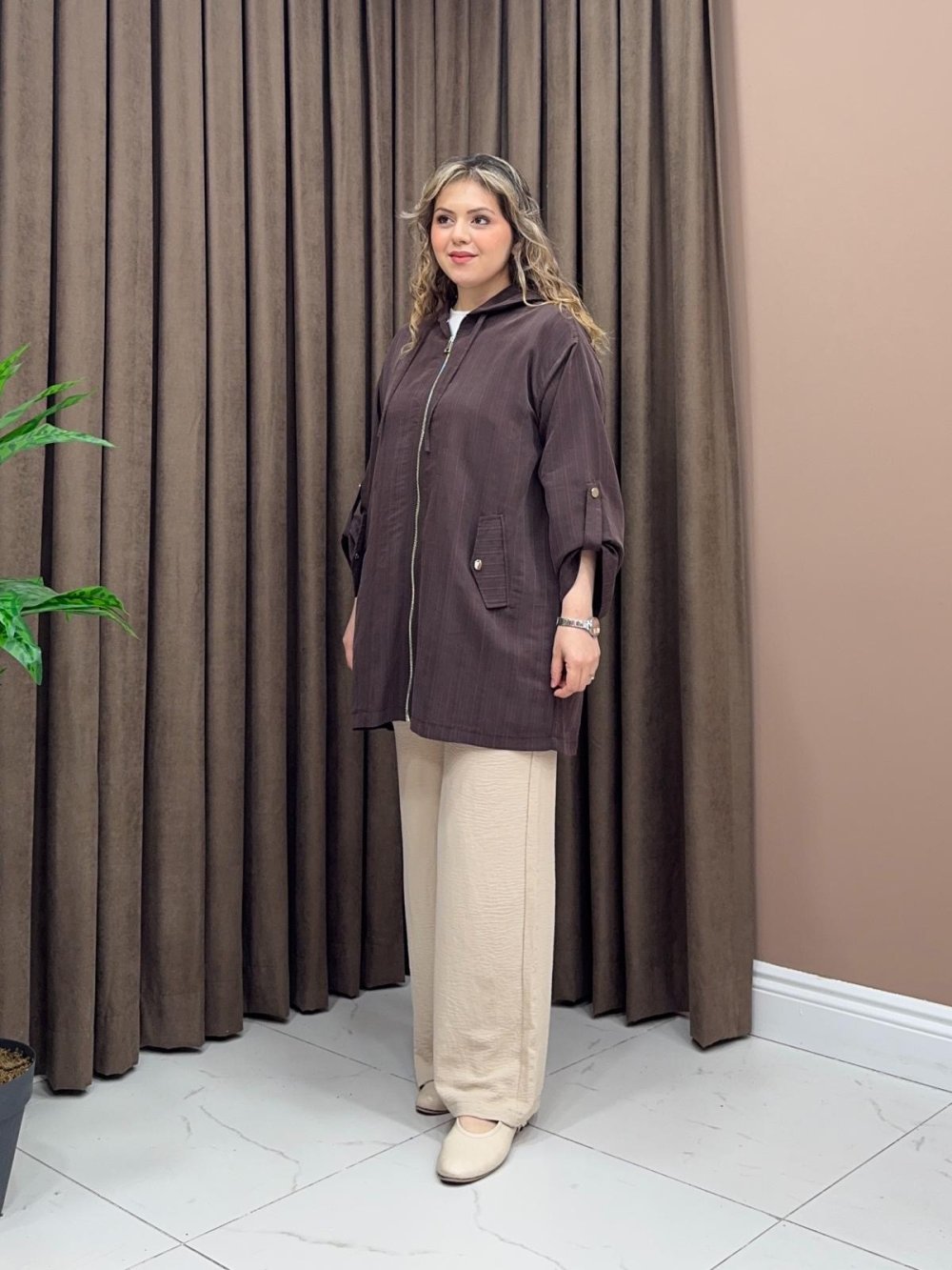 Boydan fermuarlıdır, iki adet cebi mevcuttur. Cepler çıtçıtlıdır kapanabilir.
