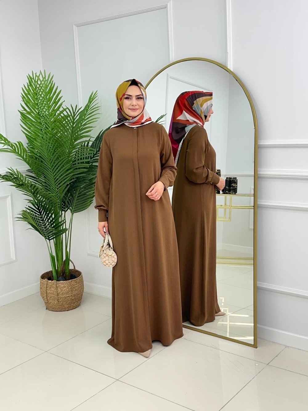 Tahta Düğmeli Ferace - Kahve