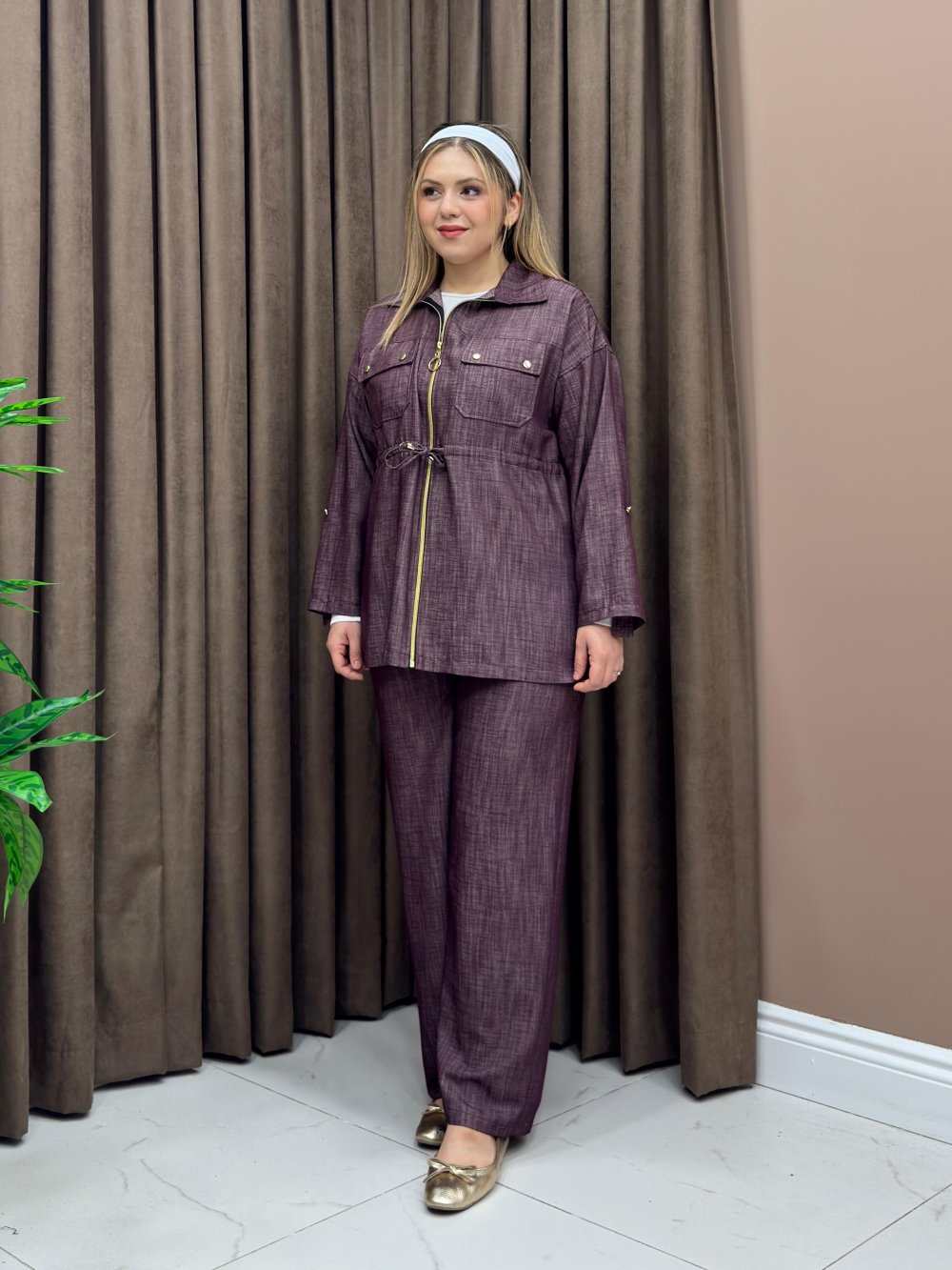 Takımımız boydan fermuarlıdır. Tensel kumaştan üretilmiştir. Pantolon beli lastiklidir.