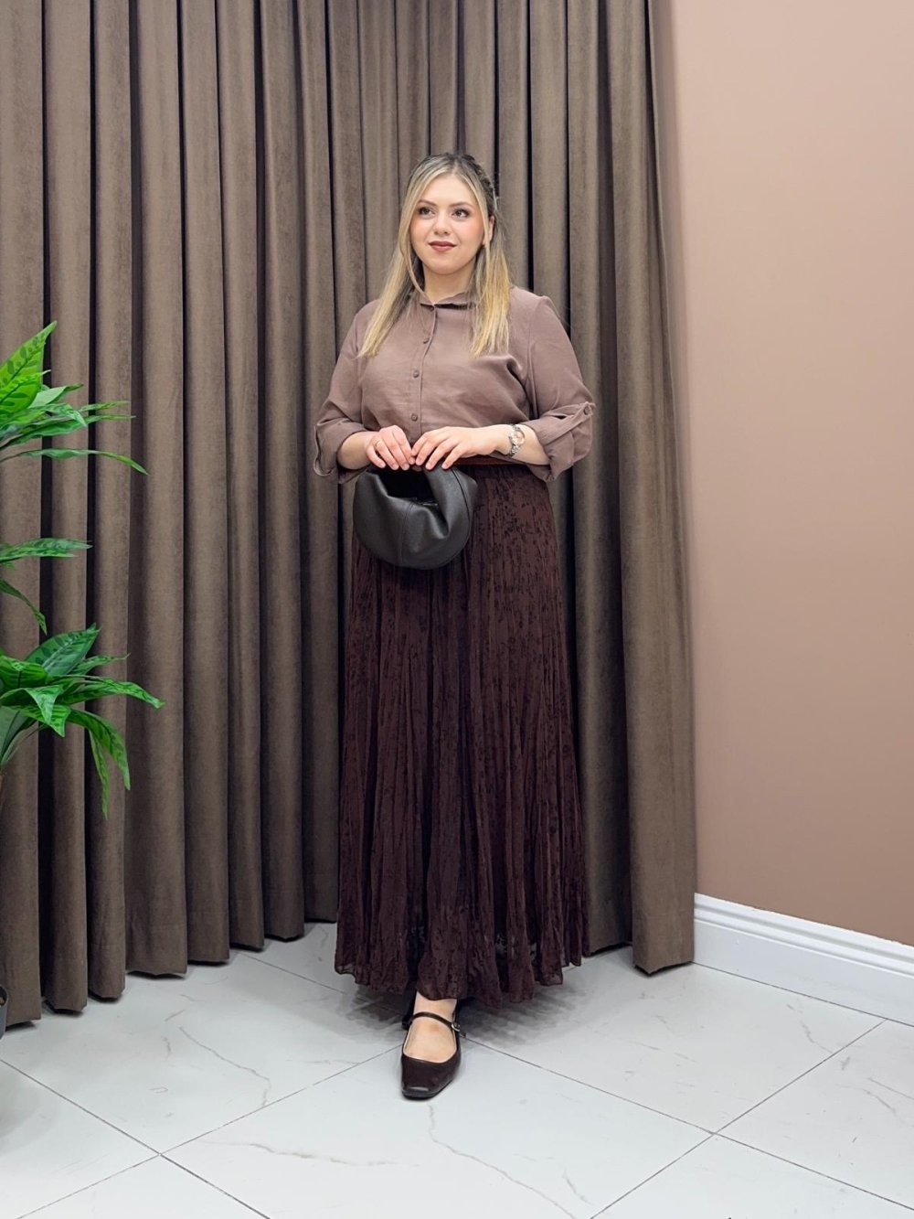 Etek beli lastiklidir. Astarlıdır. Kemer ürüne dahildir.